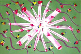 Students look at pictures of sea anemones and discuss radial design. They learn primary colors and then paint a large anemone with a wave-line background. Objectives and assessment criteriaStudents will: